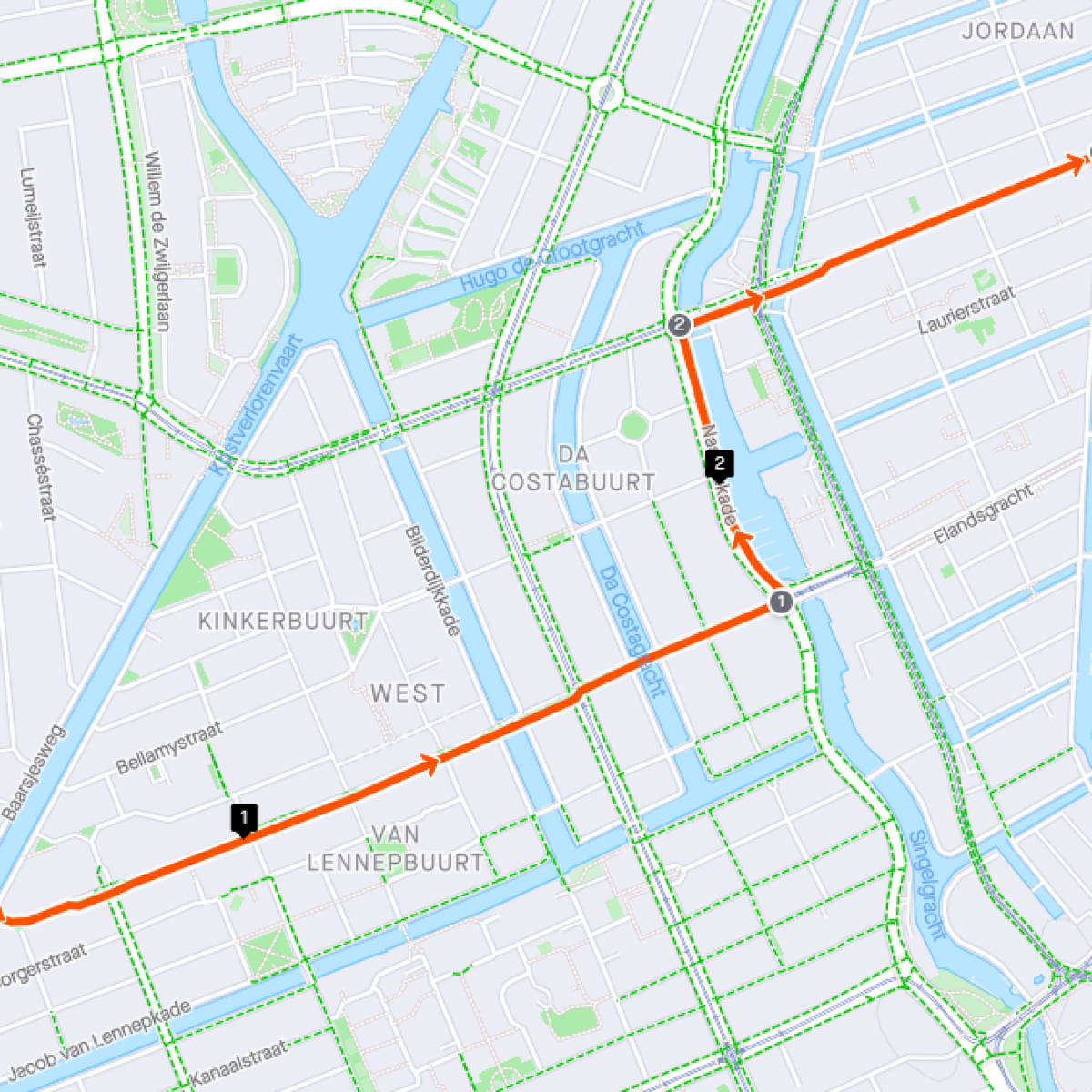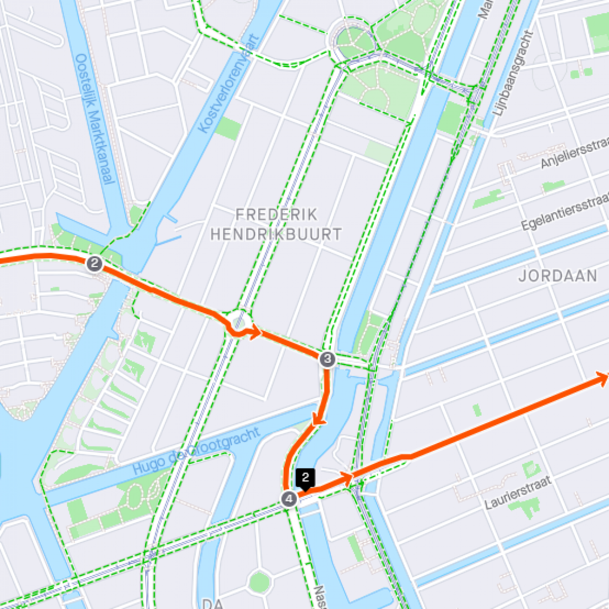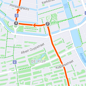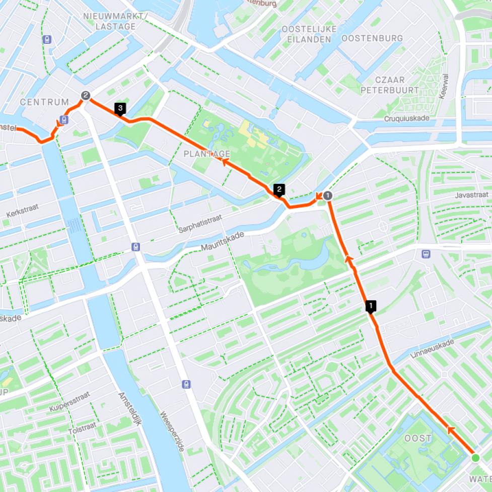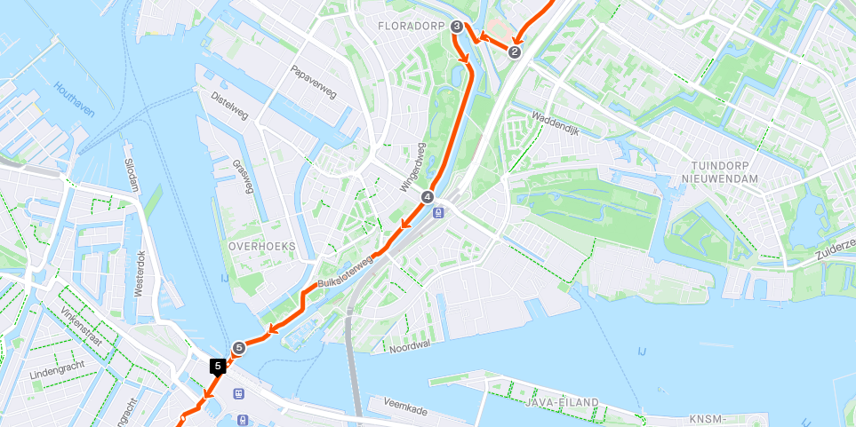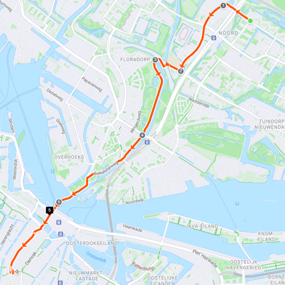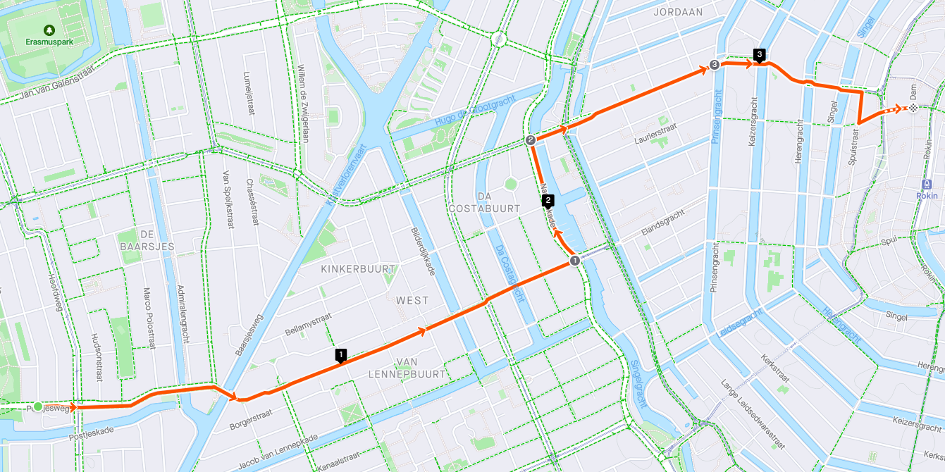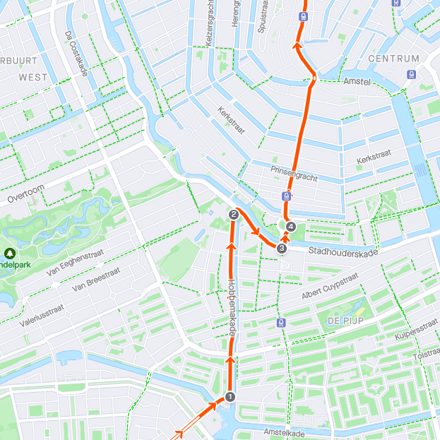 Na het parkeren van de auto volg je per fiets ‘Centrum’ en kom je bij de veerponten. Je kunt gebruik maken van het Buiksloterveer. Na de oversteek dien je rechtsom het Centraal Station te fietsen en de pijlen te volgen via de Singel naar de start op de Dam. De routes zijn hiervoor ook uitgepijld. Houd er rekening mee dat het druk kan zijn op de veerponten, vertrek dus op tijd en calculeer enige wachttijd in.
