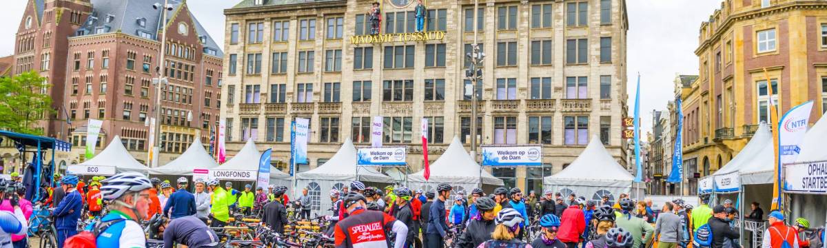 The start and finish for all distances are next to the Royal Palace, the Nieuwe Kerk and the National Monument on Dam Square in Amsterdam. This square, which dates from the 12th century, has been transformed into an attractive start and finish location. Catering, lockers, toilets, live entertainment, various exhibitors with great offers, Red Cross and even a repair station are all available. It’s also possible to rent a VIP tent on Dam Square. In addition to all participants who start and finish on the Dam, other public are also welcome to take a look at this cycling party.