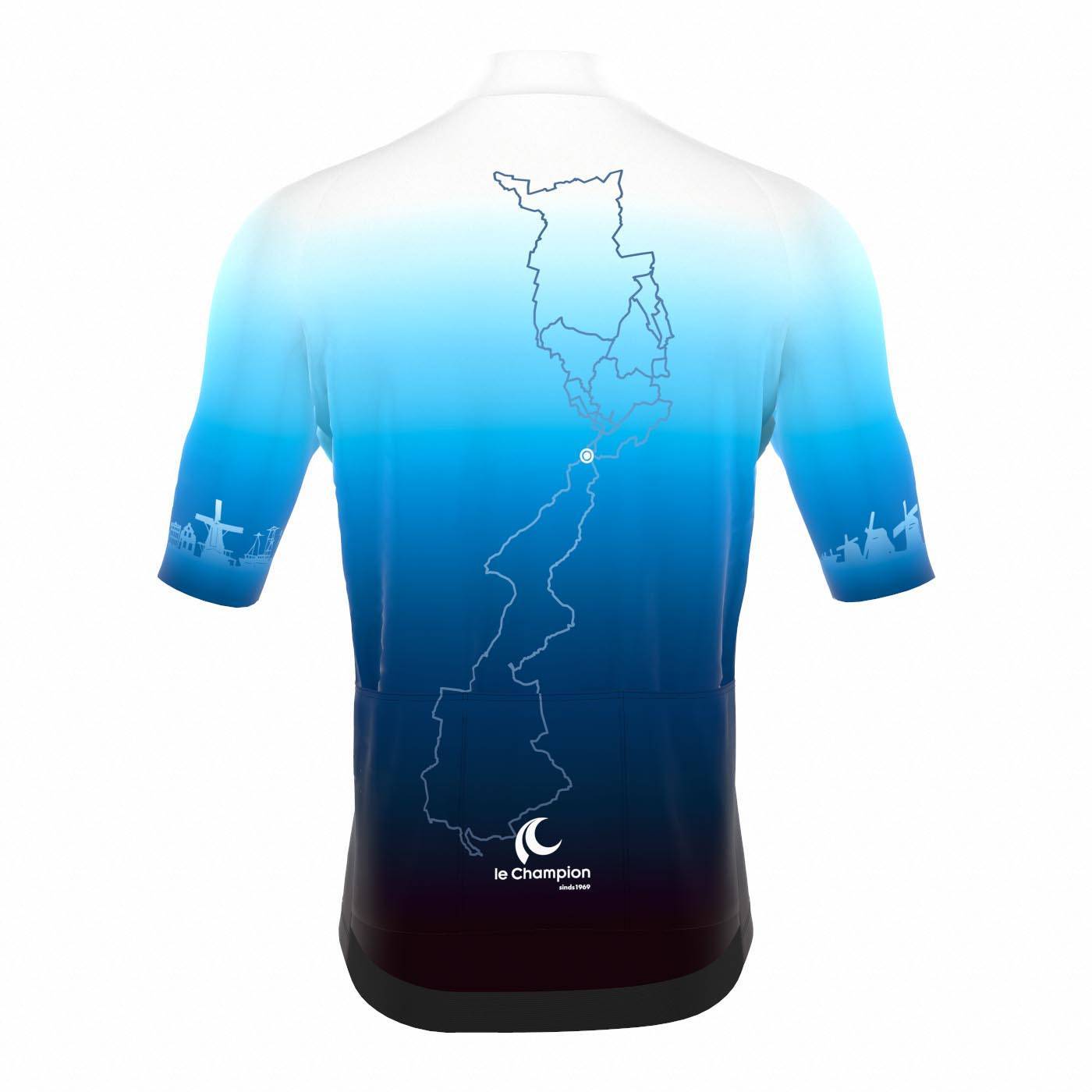 De wieleroutfit is ontworpen voor comfort de hele dag door, maar biedt tevens een aerodynamisch voordeel. Het wielershirt is gemaakt van een polyestermengsel van hoge kwaliteit, met stretch in 4 richtingen, en past zich aan de vorm van je lichaam aan. De lange aerodynamische mouwen reiken tot net voor het uiteinde van de biceps. Dit maakt de overgang van materiaal en huid vloeiend en verbetert de aerodynamica. De ritsen hebben een geïntegreerd flip-lock systeem. Omhoog wippen om de rits te openen of te sluiten, naar beneden wippen om in de positie te blokkeren. Het wielershirt heeft standaard 3 gemakkelijk te bereiken achterzakken. Perfect om alle dingen die je op die lange ritten nodig hebt in op te bergen.